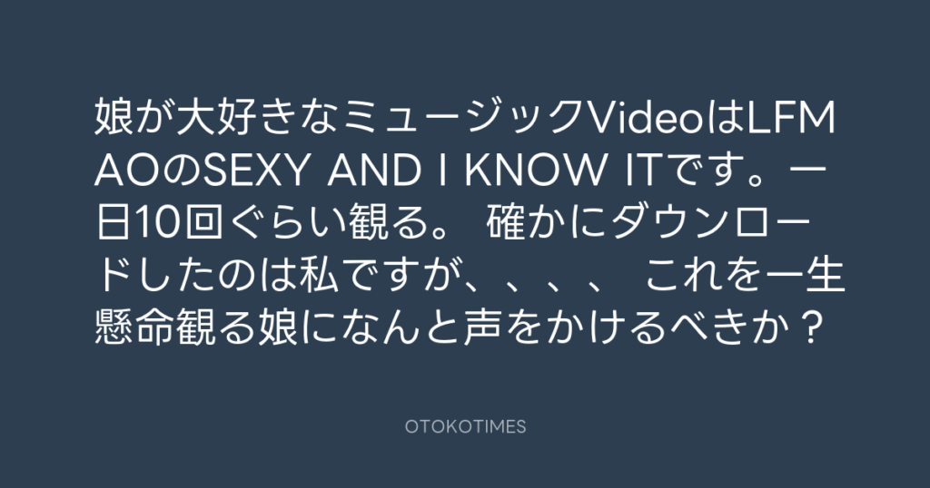 娘が大好きなミュージックVideoはLFMAOのSEXY AND I KNOW ITです。一日10回ぐらい... -