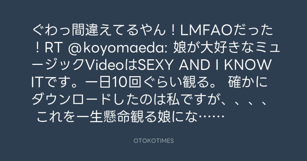 ぐわっ間違えてるやん!LMFAOだった!RT @koyomaeda: 娘が大好きなミュージックVid... -