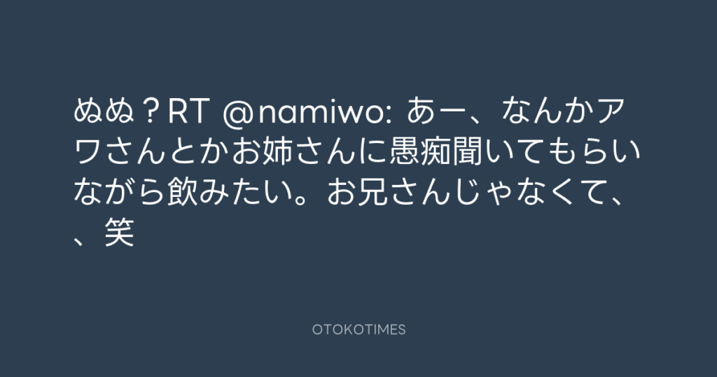 ぬぬ?RT @namiwo: あー、なんかアワさんとかお姉さんに愚痴聞いてもらいながら飲... -