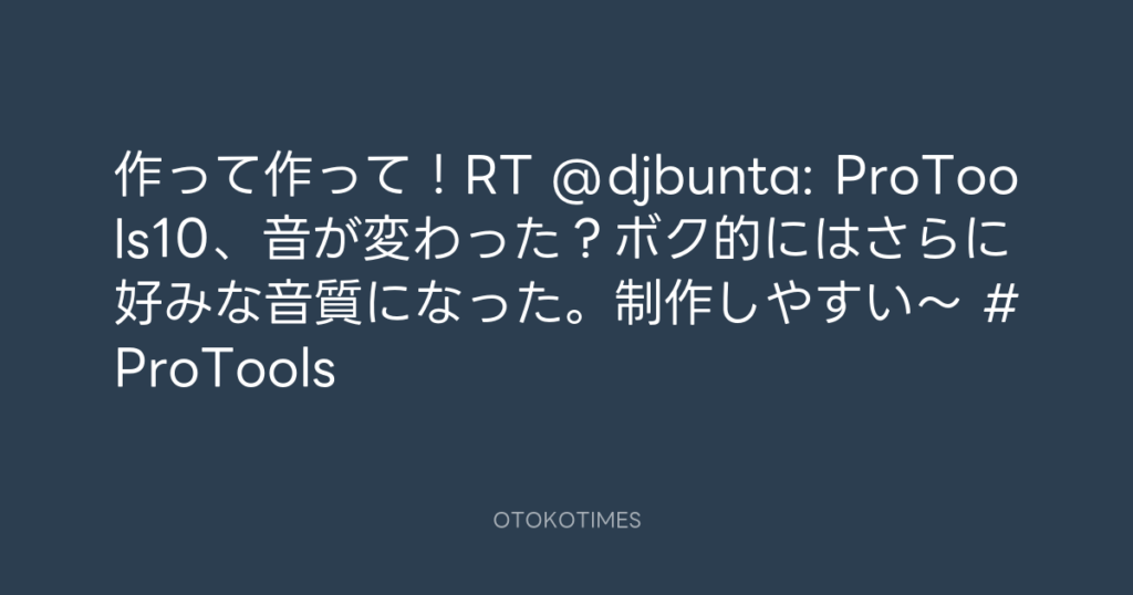 作って作って!RT @djbunta: ProTools10、音が変わった?ボク的にはさらに好みな音... -