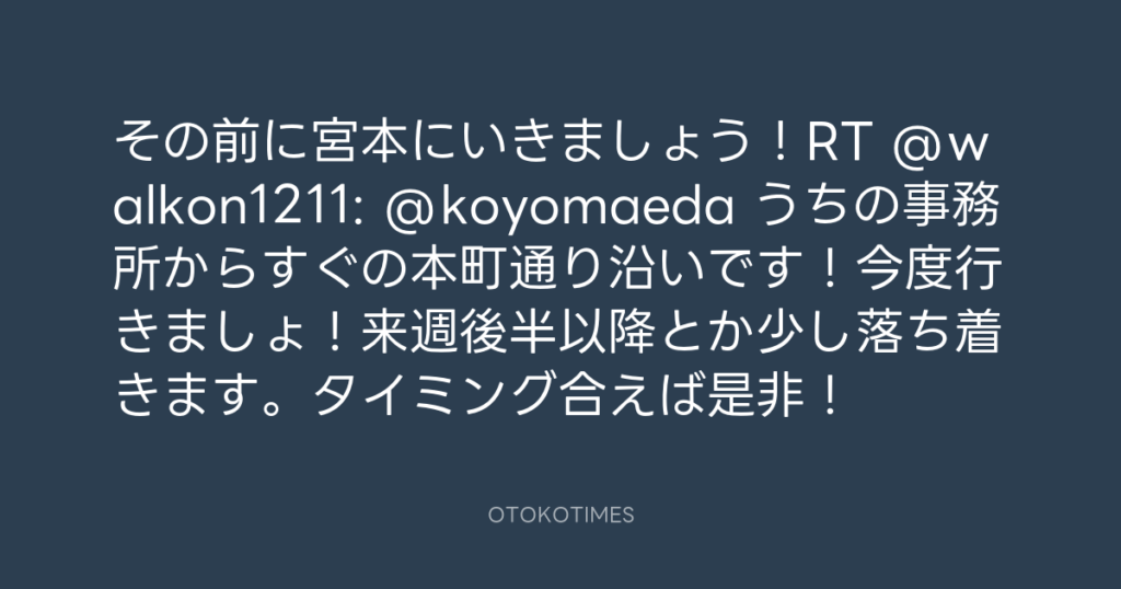 その前に宮本にいきましょう!RT @walkon1211: @koyomaeda うちの事務所からすぐの... -