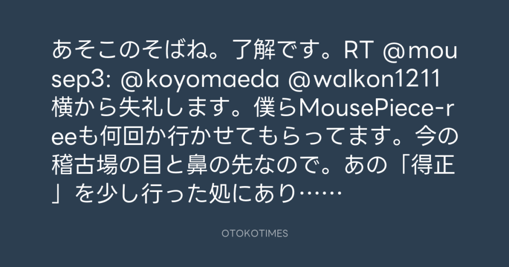 あそこのそばね。了解です。RT @mousep3: @koyomaeda @walkon1211 横から失礼しま... -