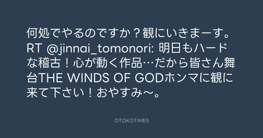 何処でやるのですか?観にいきまーす。RT @jinnai_tomonori: 明日もハードな稽古!... -