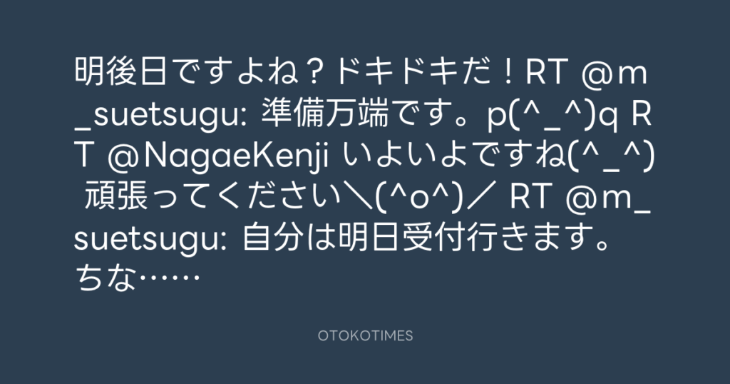 明後日ですよね?ドキドキだ!RT @m_suetsugu: 準備万端です。p(^_^)q RT @NagaeKe... -
