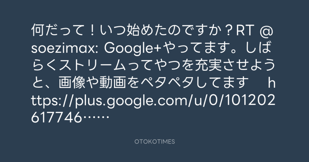 何だって!いつ始めたのですか?RT @soezimax: Google+やってます。しばらくストリ... -