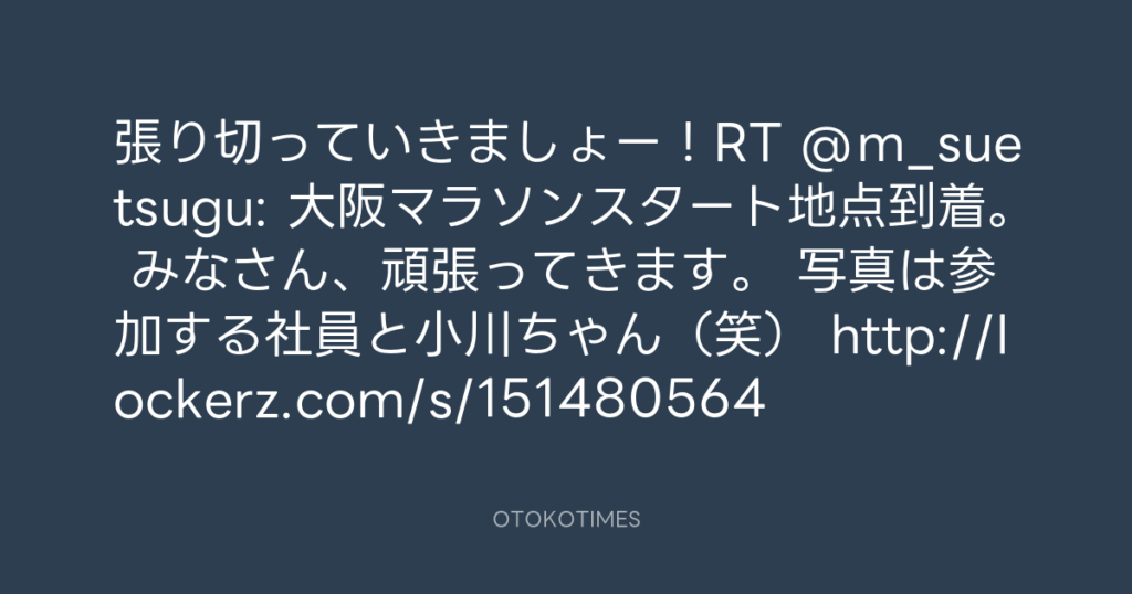 張り切っていきましょー!RT @m_suetsugu: 大阪マラソンスタート地点到着。 みなさ... -