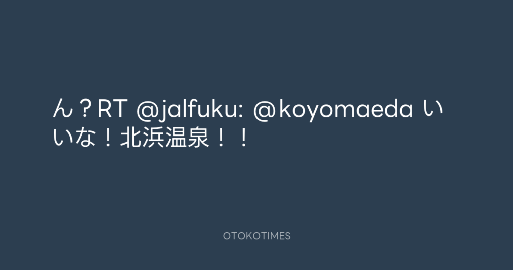 ん?RT @jalfuku: @koyomaeda いいな!北浜温泉!! -