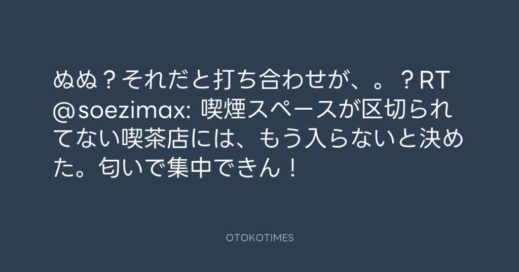 ぬぬ?それだと打ち合わせが、。?RT @soezimax: 喫煙スペースが区切られてない喫... -