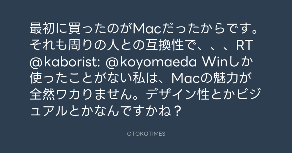 最初に買ったのがMacだったからです。それも周りの人との互換性で、、、RT @kabori... -