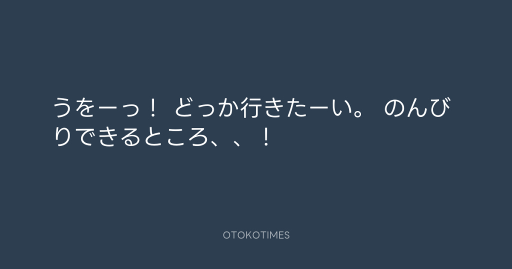 うをーっ! どっか行きたーい。 のんびりできるところ、、! -