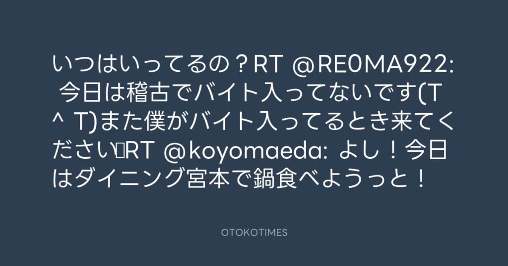 いつはいってるの?RT @RE0MA922: 今日は稽古でバイト入ってないです(T ^ T)また僕... -