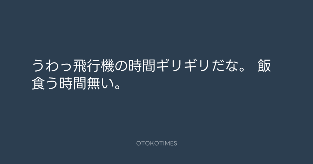 うわっ飛行機の時間ギリギリだな。 飯食う時間無い。 -