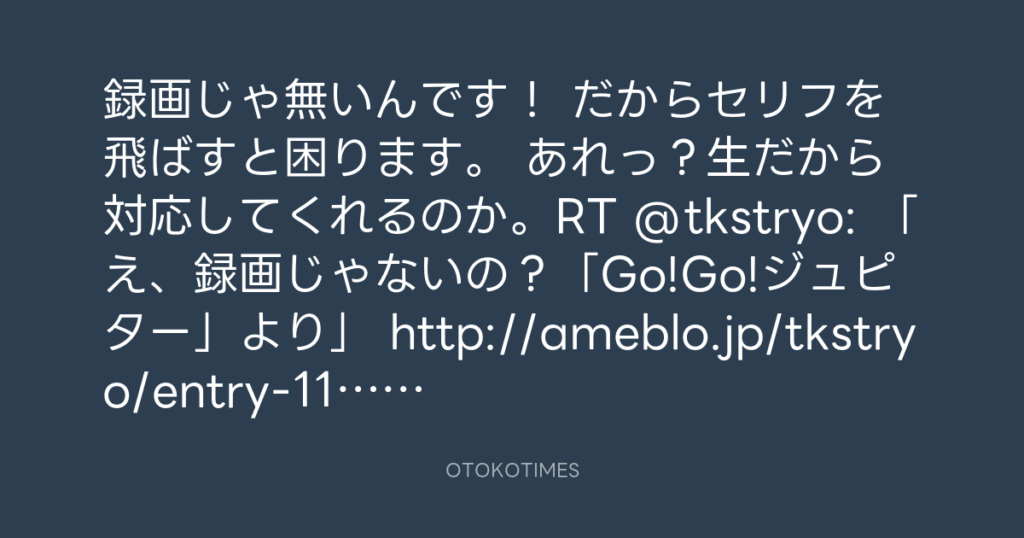録画じゃ無いんです! だからセリフを飛ばすと困ります。 あれっ?生だから対応し...