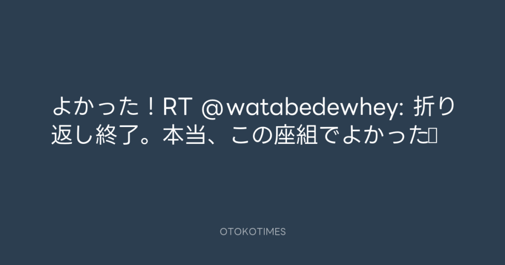 よかった!RT @watabedewhey: 折り返し終了。本当、この座組でよかった♪ -