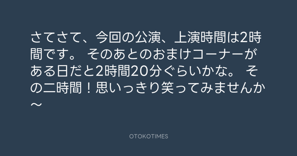 さてさて、今回の公演、上演時間は2時間です。 そのあとのおまけコーナーがある日... -