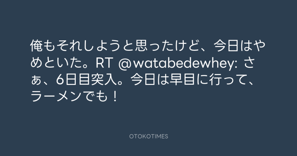 俺もそれしようと思ったけど、今日はやめといた。RT @watabedewhey: さぁ、6日目突... -