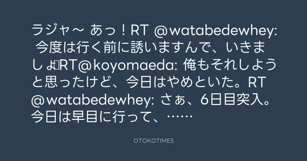 ラジャ~ あっ!RT @watabedewhey: 今度は行く前に誘いますんで、いきましょ♪RT@ko... -