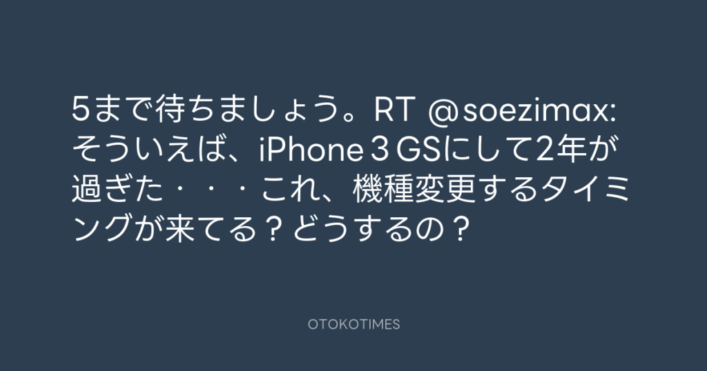 5まで待ちましょう。RT @soezimax: そういえば、iPhone3GSにして2年が過ぎた・・... -