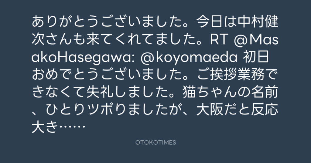 ありがとうございました。今日は中村健次さんも来てくれてました。RT @MasakoHaseg...