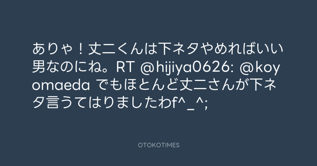 ありゃ!丈二くんは下ネタやめればいい男なのにね。RT @hijiya0626: @koyomaeda で... -