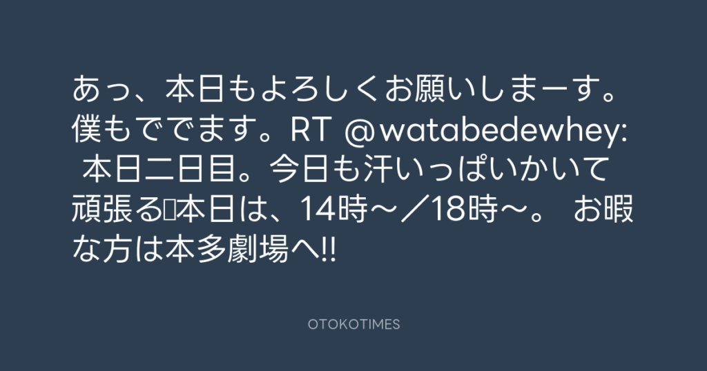 あっ、本日もよろしくお願いしまーす。僕もででます。RT @watabedewhey: 本日二日... -