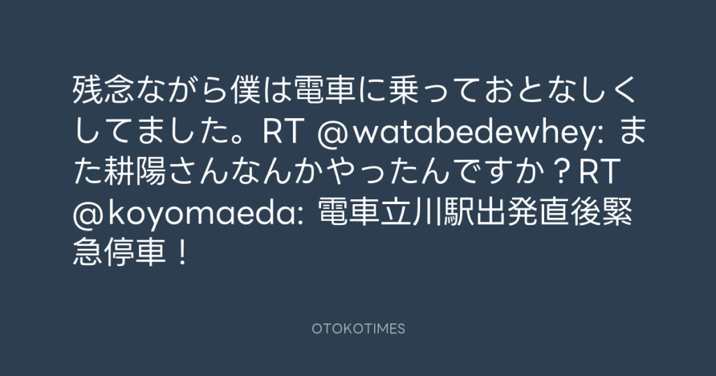 残念ながら僕は電車に乗っておとなしくしてました。RT @watabedewhey: また耕陽さ... -