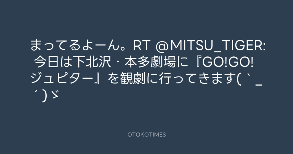 まってるよーん。RT @MITSU_TIGER: 今日は下北沢・本多劇場に『GO!GO!ジュピター』... -