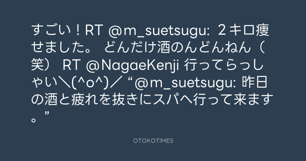 すごい!RT @m_suetsugu: 2キロ痩せました。 どんだけ酒のんどんねん(笑) RT @N... -