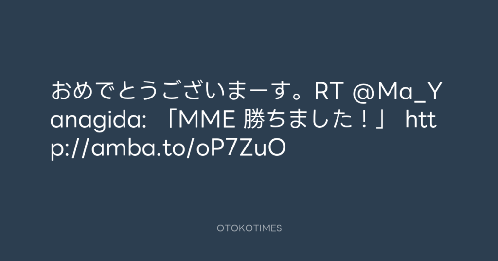 おめでとうございまーす。RT @Ma_Yanagida: 「MME 勝ちました!」 http://amba.to/... -