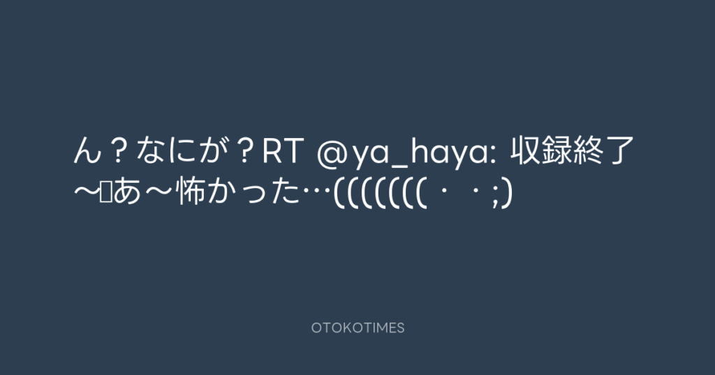 ん?なにが?RT @ya_haya: 収録終了~♪あ~怖かった…(((((((・・;) -