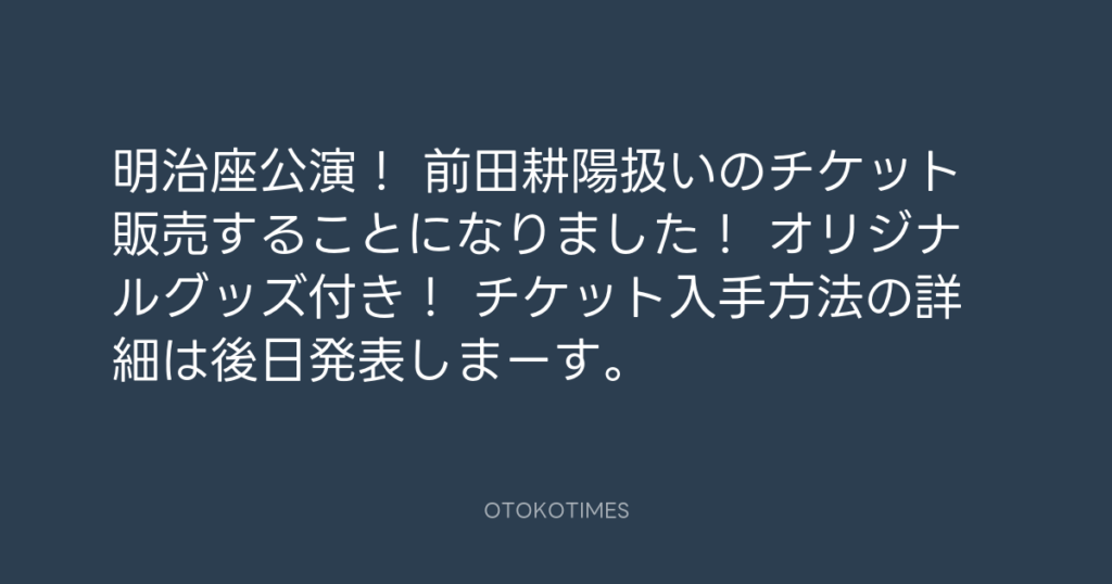 明治座公演! 前田耕陽扱いのチケット販売することになりました! オリジナルグッ...
