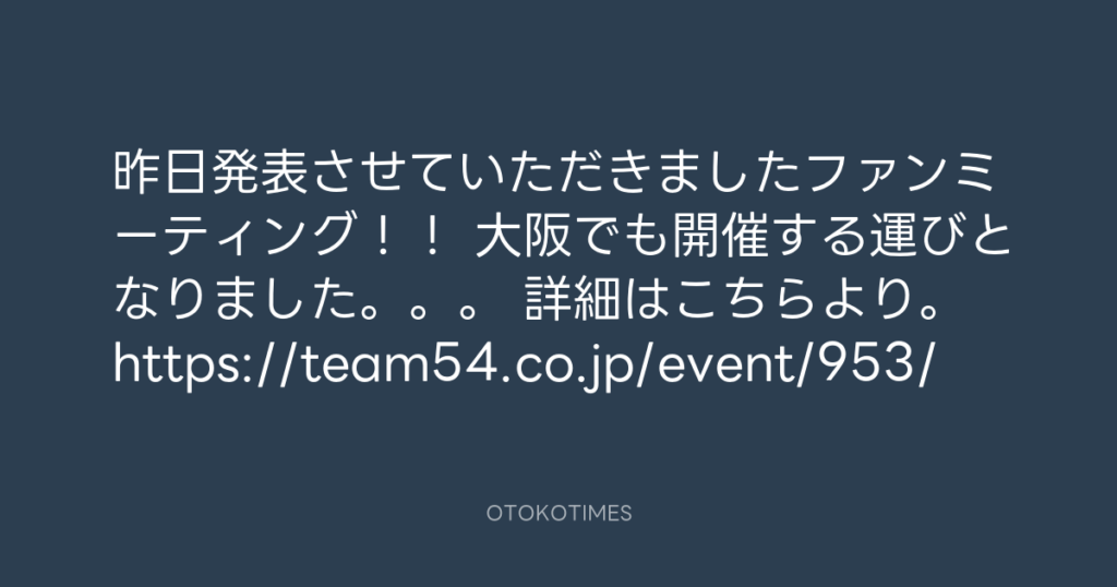 昨日発表させていただきましたファンミーティング!! 大阪でも開催する運びとなり... -