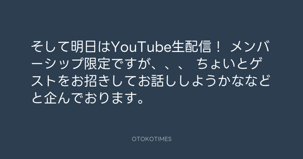 そして明日はYouTube生配信! メンバーシップ限定ですが、、、 ちょいとゲストをお... -
