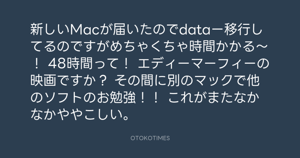 新しいMacが届いたのでdataー移行してるのですがめちゃくちゃ時間かかる〜! 48時... -