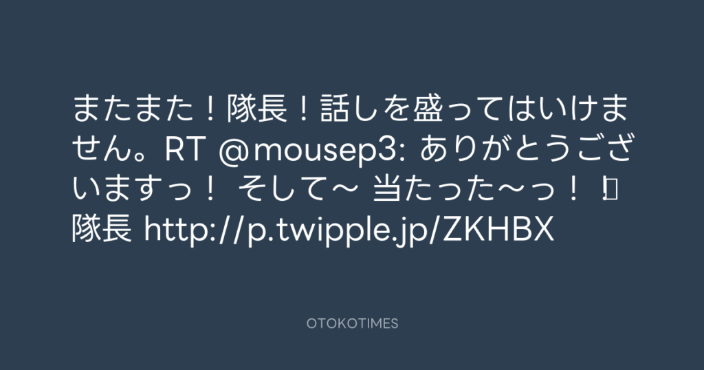 またまた!隊長!話しを盛ってはいけません。RT @mousep3: ありがとうございますっ...