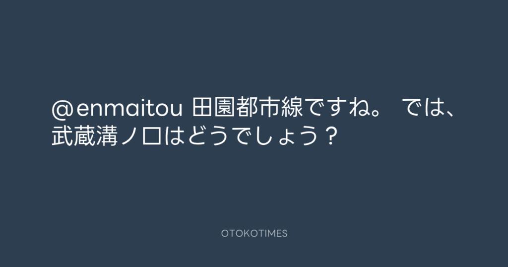 @enmaitou 田園都市線ですね。 では、武蔵溝ノ口はどうでしょう? -