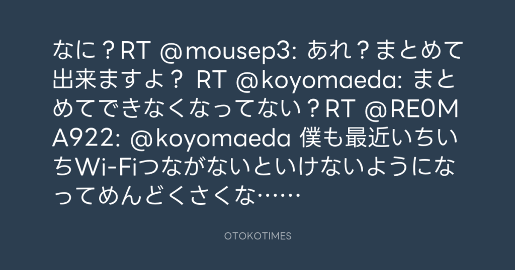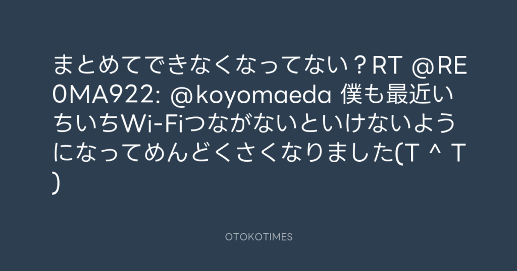 まとめてできなくなってない?RT @RE0MA922: @koyomaeda 僕も最近いちいちWi-Fiつ... -