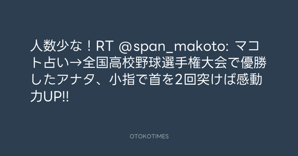 人数少な!RT @span_makoto: マコト占い→全国高校野球選手権大会で優勝したアナタ... -