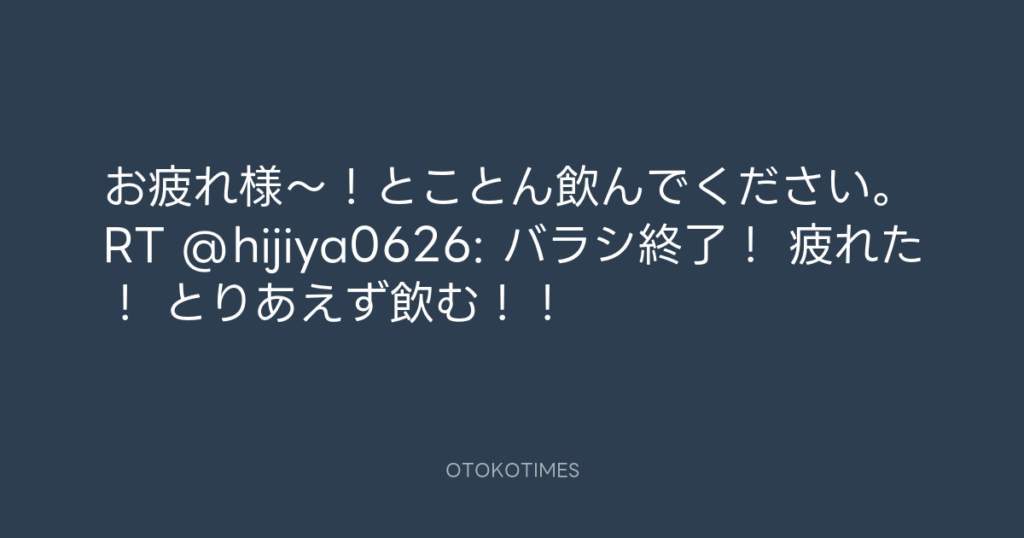 お疲れ様~!とことん飲んでください。RT @hijiya0626: バラシ終了! 疲れた! と... -