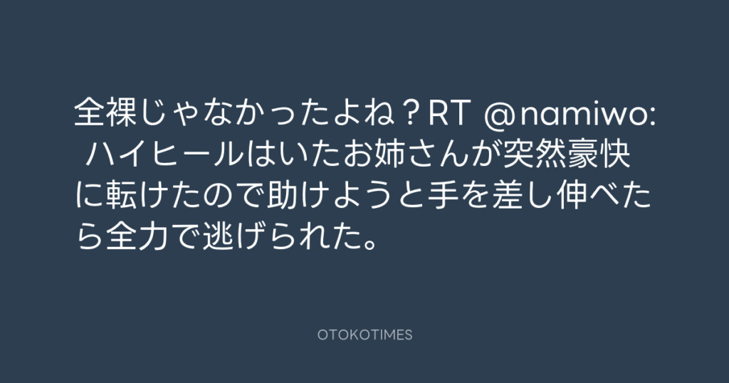 全裸じゃなかったよね?RT @namiwo: ハイヒールはいたお姉さんが突然豪快に転けた... -