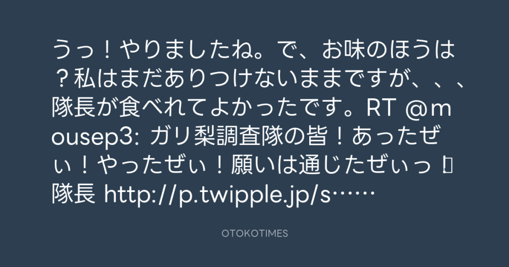 うっ!やりましたね。で、お味のほうは?私はまだありつけないままですが、、、隊... -