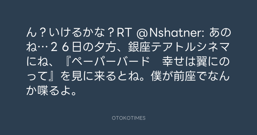ん?いけるかな?RT @Nshatner: あのね…26日の夕方、銀座テアトルシネマにね、『... -
