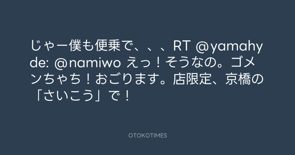 じゃー僕も便乗で、、、RT @yamahyde: @namiwo えっ!そうなの。ゴメンちゃち!お... -