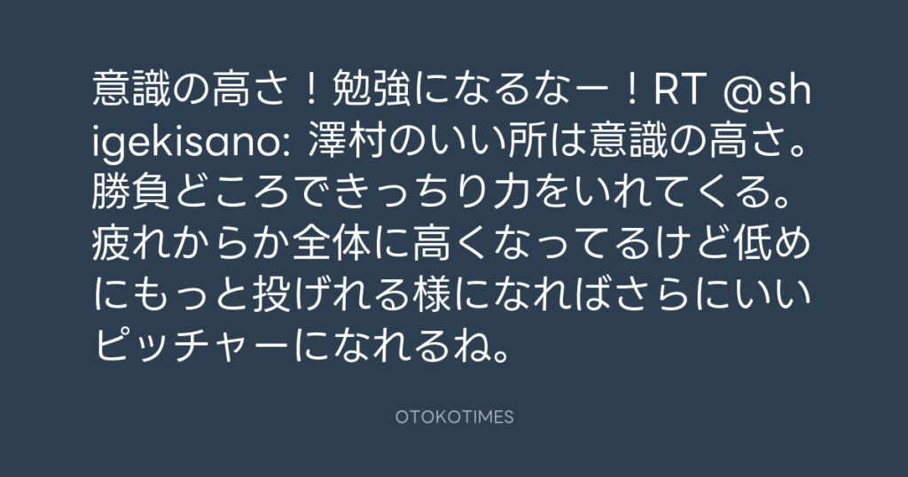 意識の高さ!勉強になるなー!RT @shigekisano: 澤村のいい所は意識の高さ。勝負ど... -
