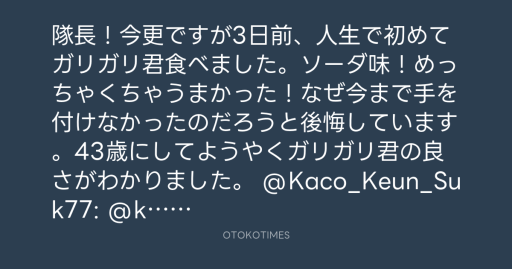 隊長!今更ですが3日前、人生で初めてガリガリ君食べました。ソーダ味!めっちゃく... -