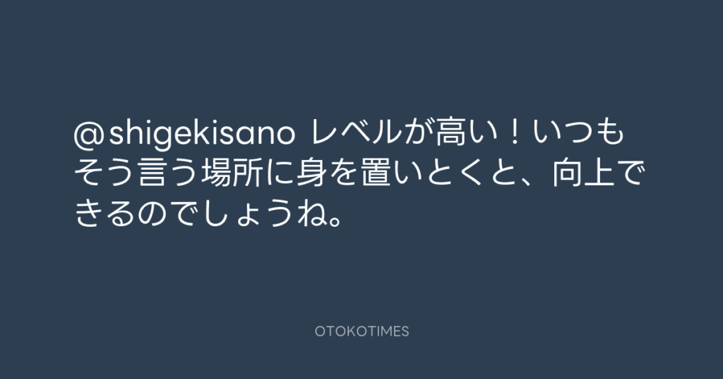 @shigekisano レベルが高い!いつもそう言う場所に身を置いとくと、向上できるので... -