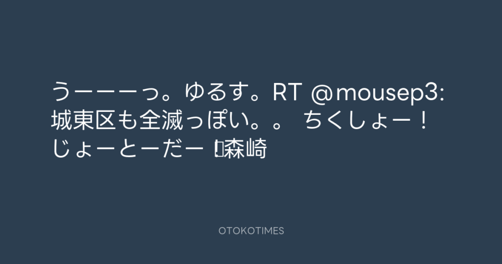 うーーーっ。ゆるす。RT @mousep3: 城東区も全滅っぽい。。 ちくしょー!じょーと... -