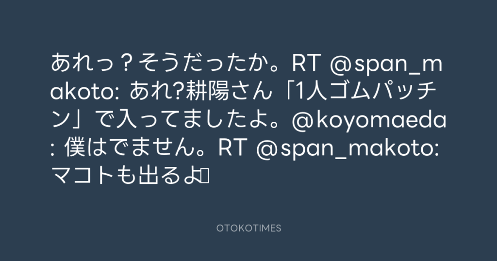 あれっ?そうだったか。RT @span_makoto: あれ?耕陽さん「1人ゴムパッチン」で入っ... -