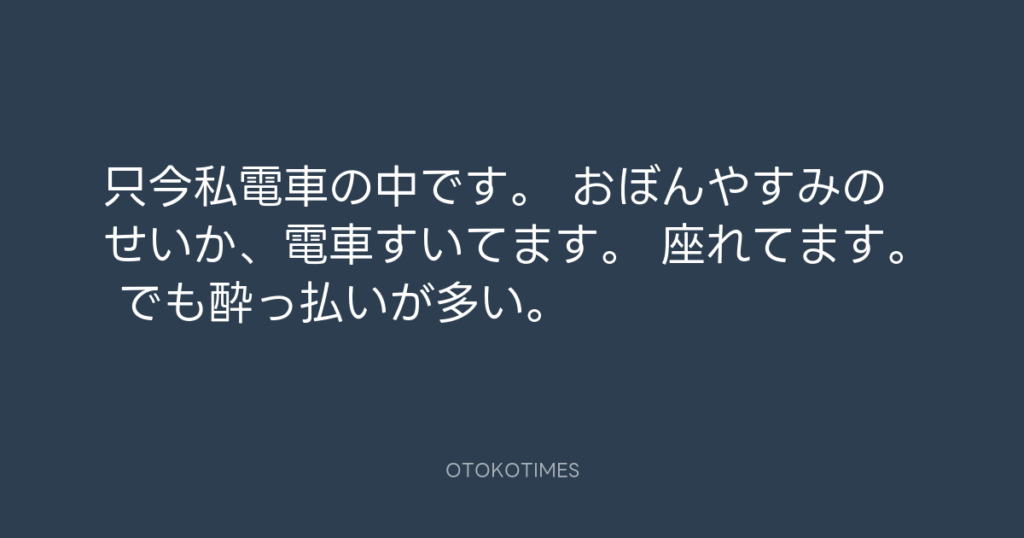 只今私電車の中です。 おぼんやすみのせいか、電車すいてます。 座れてます。 でも... -