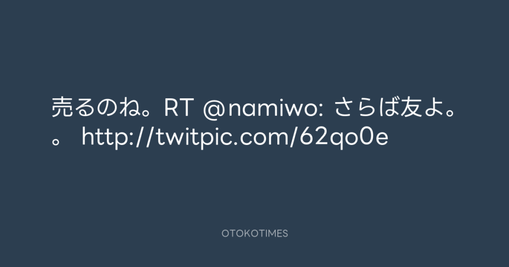 売るのね。RT @namiwo: さらば友よ。。 http://twitpic.com/62qo0e -
